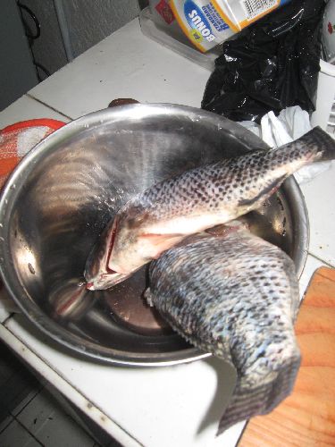 Here’s the fresh fish killed, deboweled and scraped right before my eyes an hour ago.