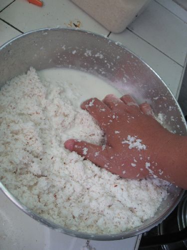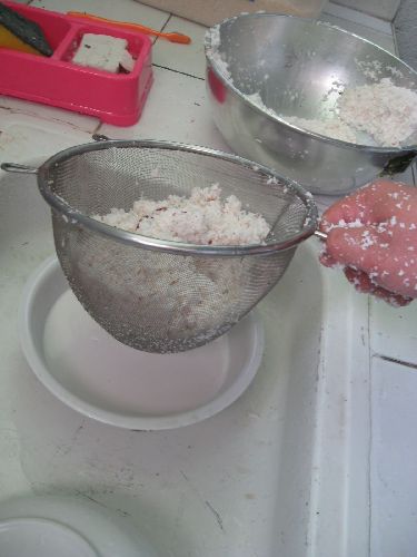 I poured in the requisite 1 glass per coconut and start to squeeze.