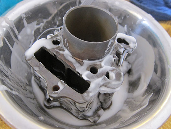 Before I gave the parts back to the shop I had time try and clean the head with some vinegar and baking powder: