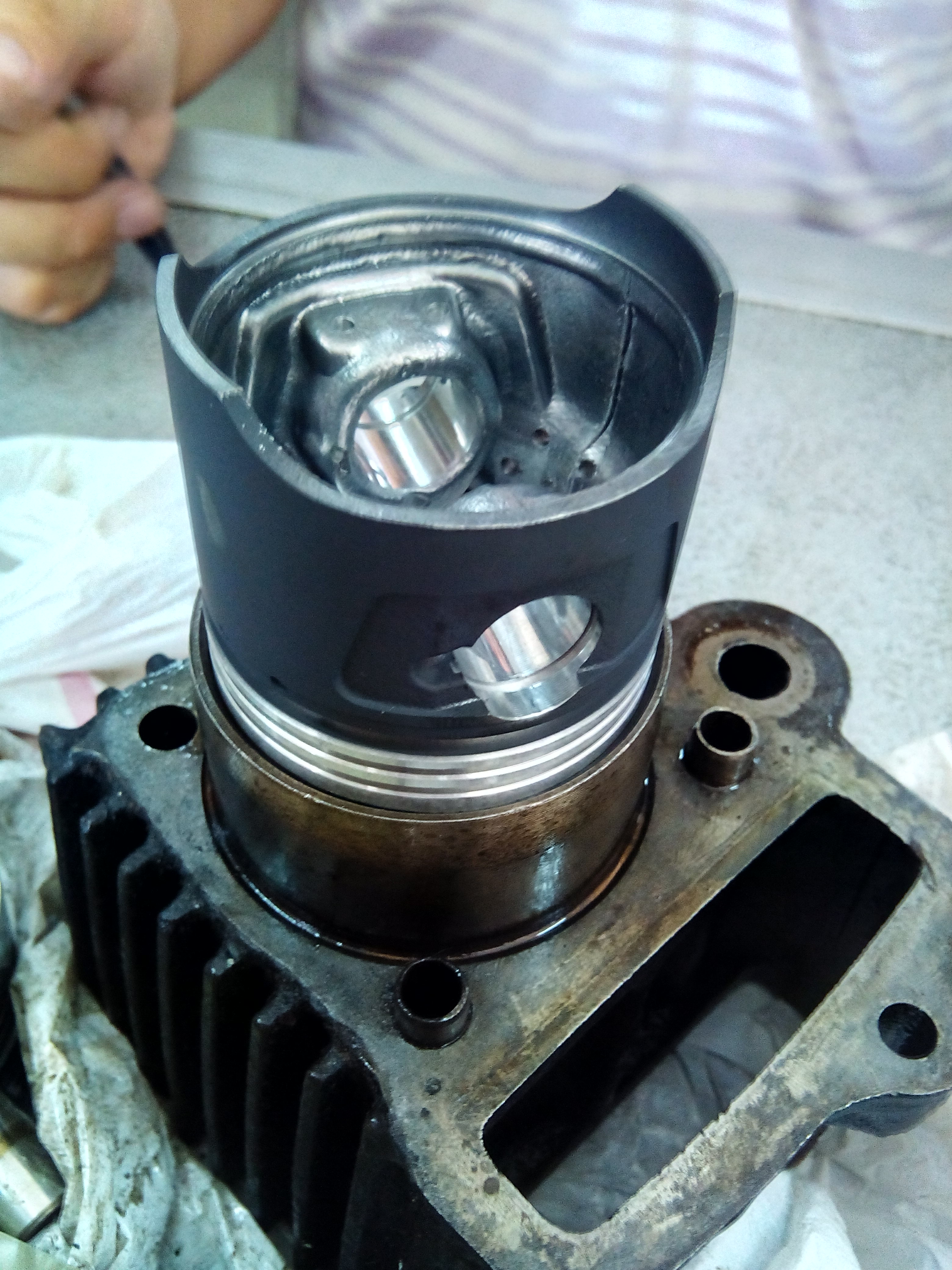 This is the point where we made a mistake. I went to Triumph Caloocan to buy the parts but I should have brought the cylinder head so the store can match the piston size to the cylinder. When I came back we immediately saw the standard piston size was too small and that it needed the next larger size. That meant another trip to Caloocan this time with the cylinder head. Looking back I should have immediately assumed it needed a rebore regardless of whether the standard piston still fit or not.