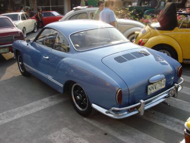 and my vote for Car of the show (if I voted, we didn’t stick around long enough to), a nice blue one. I particularly liked this for the almost perfect color. That, and the fact I’ve always wanted a Kharmann Ghia. My dad owned a hell of a lot of different VWs when I was a kid, so I’m familiar with most of them. I think Kharmanns are the coolest of the lot.